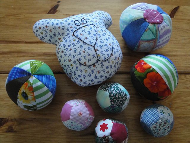also Gila from Kiel to come up with something new for the children: beautiful colorful balls, which they will certainly sell very creative time - because you can sometimes the sisters with beautiful throw :-)) And the friendly bear is not long to wait for a child that pushes him and cuddles. The small balls Gila has stitched together from pentagons by hand.